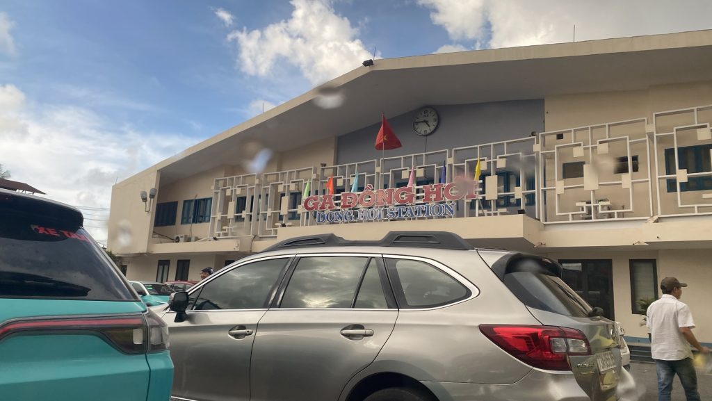 The train arrived at Dong Hoi Station shortly before 5 pm. The train assistant went to our cabin shortly and rushed us out. We barely made it out with our belongings while other people shouted at us in Vietnamese. We quickly crossed another train track to the platform when another train arrived. We chuckled as we now understood why we were shouted at =).