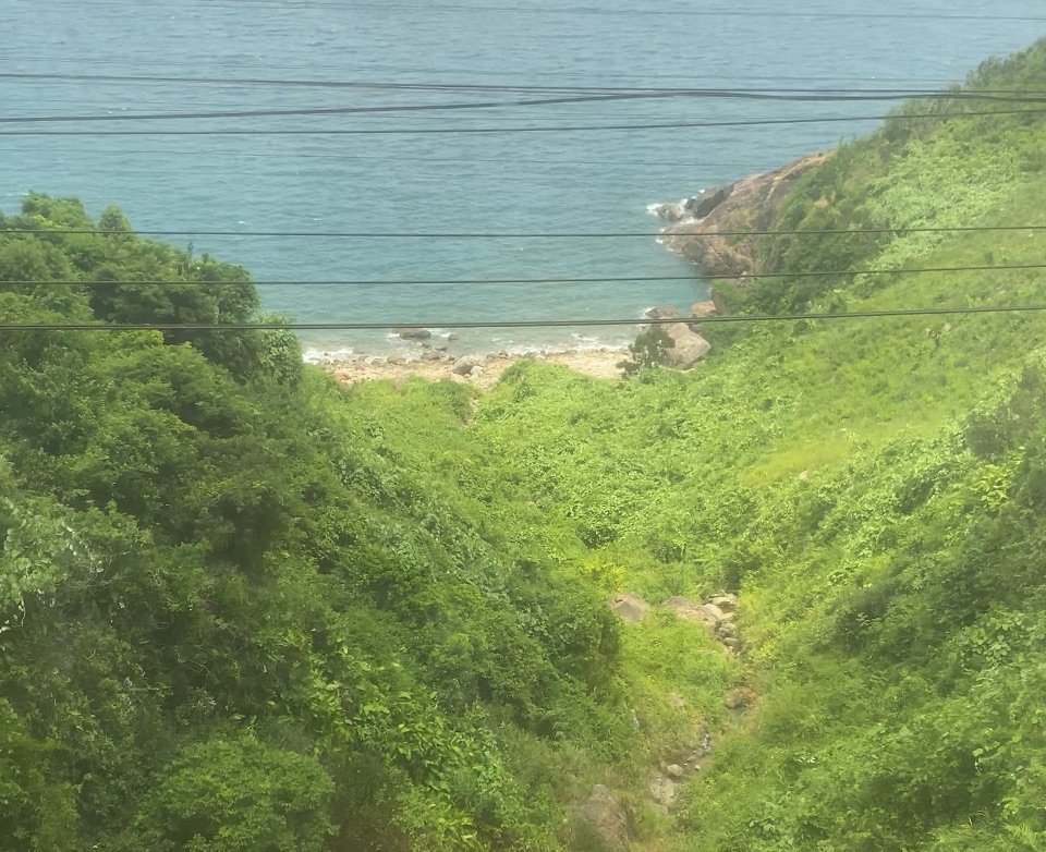 The biggest highlight of the trip came within the hour after departure. We admired the Hai Van Mountain Passage. The train went by the edge of the mountainside right next to the ocean revealing a stunning scenery of deep valleys right underneath us and vast patches of greenery leading up to beautiful secluded sandy and rocky beaches.